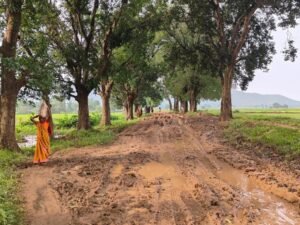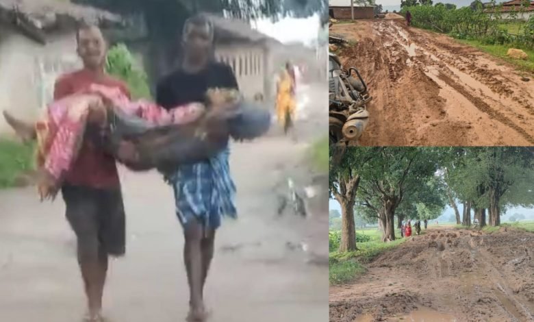 रायगढ़। बारिश थम चुकी थी, लेकिन दलदल अब भी गाँव को अपनी गिरफ्त में लिए हुए था। धरमजयगढ़ के कंड राजा से पंडरा पाट जाने वाला रास्ता – नाम तो सड़क है, मगर हालत ऐसी कि पैरों से कदम निकालना भी मुश्किल। इसी कीचड़ भरे और टूटे-फूटे रास्ते पर, ग्राम पंचायत विजयनगर के ग्राम कंडरजा मोहला पटना पारा में, एक पति अपनी बीमार पत्नी को गोद में उठाए अस्पताल की ओर बढ़ रहा था।