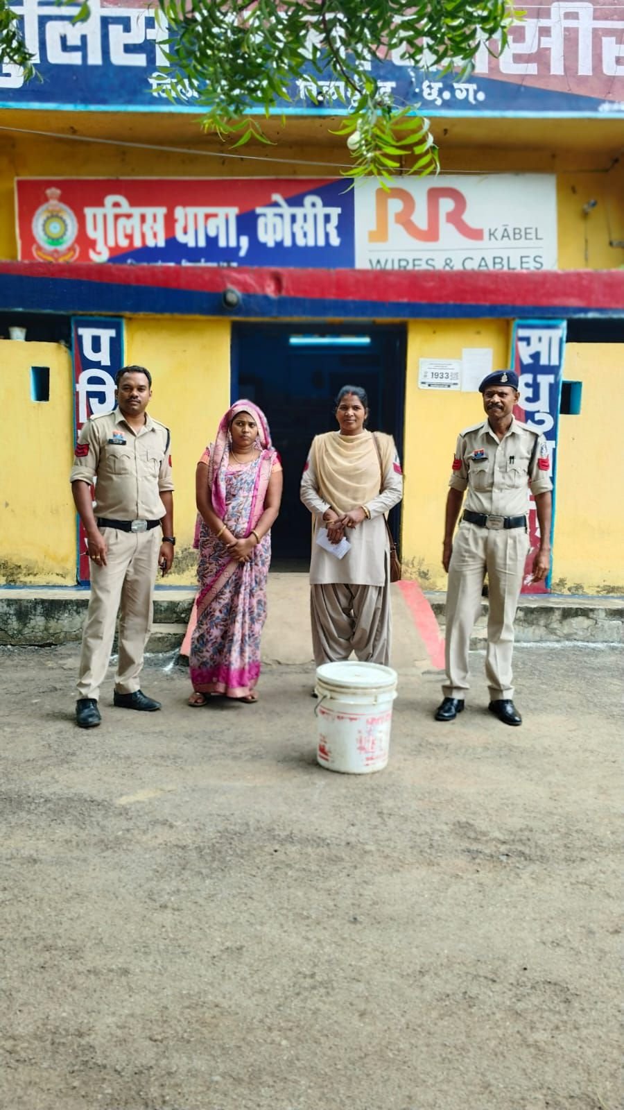 कोशीर पुलिस की बड़ी कार्यवाही महिला से 25लीटर शराब जप्त