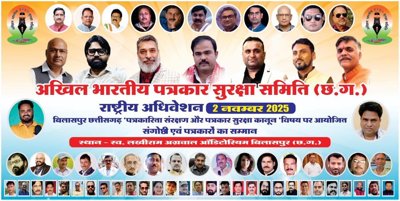 अखिल भारतीय पत्रकार सुरक्षा समिति भारत के राष्ट्रीय अध्यक्ष जिगनेश कालावाडिया (गुजरात ) की सहमति से छत्तीसगढ़ की इकाई को राष्ट्रीय अधिवेशन 2025 का जिम्मेदारी दी गईं जिसमे श्री जिग्नेश कालावाडिया ने कहाँ देश का पहला राज्य हैं जहां पत्रकार सुरक्षा कानून विधेयक बना हैं इसलिए ये राष्ट्रीय अधिवेशन रखा गया जिसमे देश के कई राज्यों के पत्रकार इस अधिवेशन में शामिल होंगे और अपने राज्यों की सरकार तक ये बात पहुंचाने का कार्य करेंगे की छत्तीसगढ़ की तरह उनके राज्यों में पत्रकार सुरक्षा कानून विधेयक लागू किया जाये जिससे पत्रकार स्वतंत्र रूप से पत्रकारिता कर सके.।