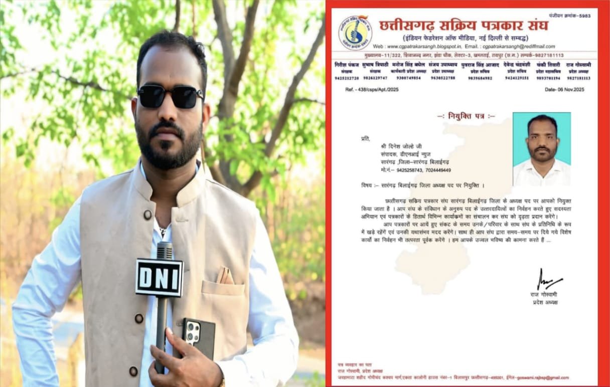 पत्रकार दिनेश जोल्हे बना ‘छत्तीसगढ़ सक्रिय पत्रकार संघ’ सारंगढ़ का जिलाध्यक्ष।