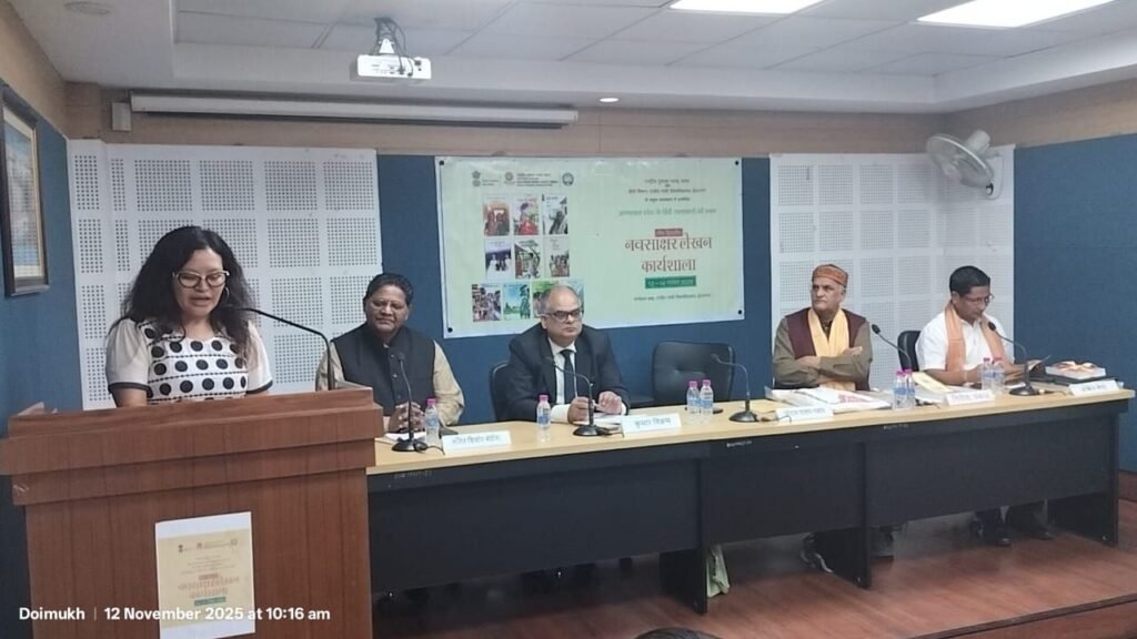 अरुणाचल प्रदेश में राष्ट्रीय पुस्तक न्यास, भारत की पहली बार हिंदी के रचनाकारों की ‘नवसाक्षर लेखन कार्यशाला’ का आयोजन राजीव गांधी विश्वविद्यालय, दोईमुख, ईटानगर में 12 से 14 नवंबर, 2025 को राजीव गांधी विश्वविद्यालय के हिंदी विभाग तथा नेशनल बुक ट्रस्ट के संयुक्त तत्वावधान में किया जा रहा है, जिसके अंतर्गत आज दिनांक 12 नवंबर, 2025 को विश्वविद्यालय के दूरस्थ शिक्षा विभाग में राजीव गांधी विश्वविद्यालय के माननीय कुलपति प्रो. जयदेव साहू तथा राष्ट्रीय पुस्तक न्यास, भारत के मुख्य संपादक एवं संयुक्त निदेशक श्री कुमार विक्रम ने उद्घाटन कर शुभारंभ किया।