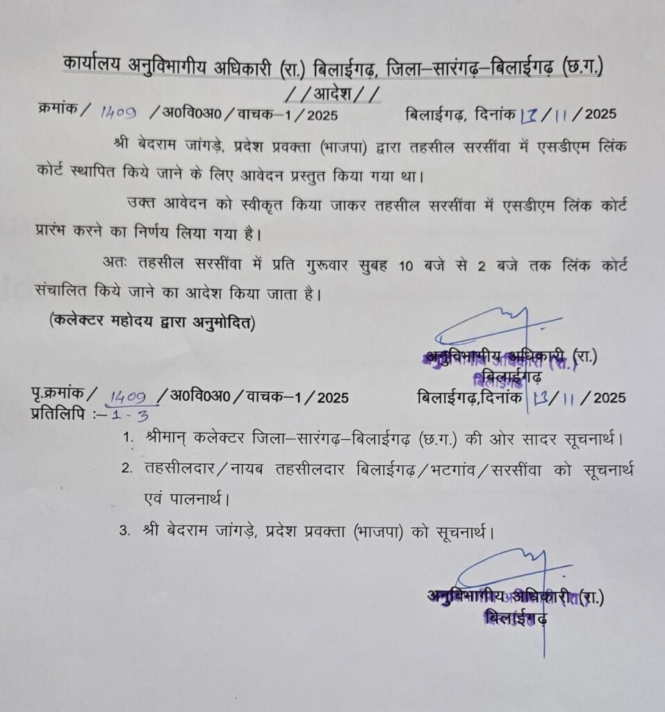 सरसीवा में ऐतिहासिक उपलब्धि: एसडीएम लिंक कोर्ट की स्थापना।